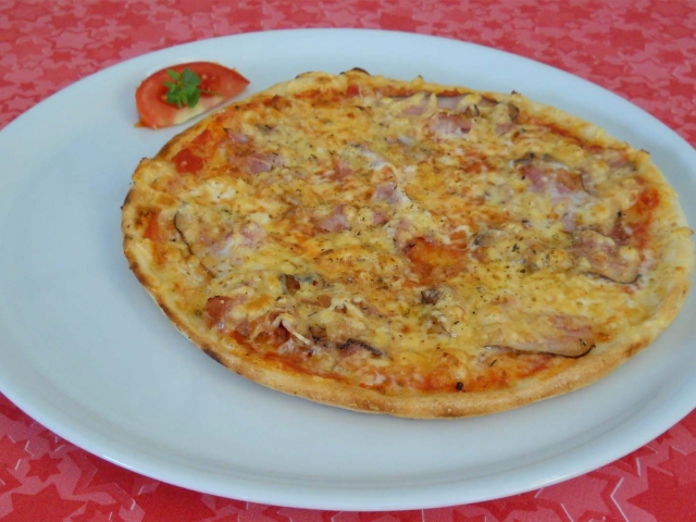 Rajčatový základ, anglická slanina, uzený sýr, oregáno