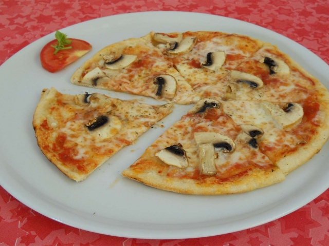 Rajčatový základ, žampiony, mozzarella, oregáno